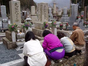 風が吹くのでロウソクがつかない。帰りに犬の墓にも参る。タヌキが掘り出して食うといけないので、上から金網をかぶせて重しをのせてある。もう白骨化しているだろうから、網は取っても良いかな。