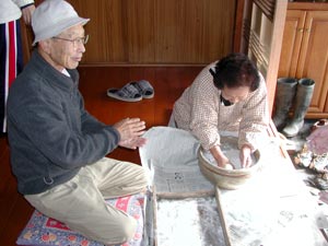 餅取り粉は米粉を使う。地方によってはカタクリ粉を使う。米粉はカビが生えやすいのだが、やはり昔からのやり方というものがあるので、まあそれに従っておく。 |
