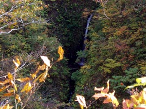 2時過ぎに夜叉ヶ池まで戻って下山する。夜叉壁直下で、背広の上下に革靴をはいた男性がペットボトル一つ手にぶら下げて登ってくるのに出会った。 下山の途中、夜叉姫が身体を清めたという「幽幻の滝」の丁度向かい側の斜面に大きめの滝が見えた。登山コースから離れているが、なかなか良さそうな滝だ。登山路の少し手前に沢に降りるマーキングがしてあったが、これのためか。 |