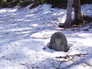 | 5合目の六地蔵の辺りはもうかなり雪が融けていて、地蔵さんが顔を出している。 | ![]() |