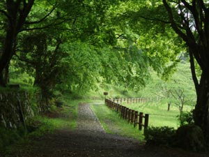 帰りは尾根道を下る。この冬の雪でたくさん木が倒れている。道がふさがっている個所も多く、確かに谷道の方が歩きやすい。それに最近は登山客が多くて、かなり道が荒れてきた。これからは谷道をメインにすると良いだろう。 飯福寺に寄って帰る。雨に濡れた緑がきれいだ。 |