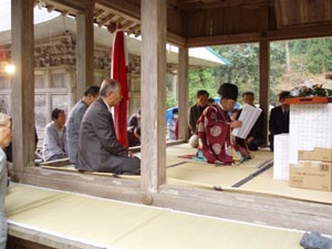 あいにくの雨だが、今日は長浜のひきやま祭の最終日なので、多分長浜はかなりの観光客だろう。妻と娘も出かけていった。 一方、うちの村といえば静かなもので、村人全員がお参りしたって大した数ではない。 |