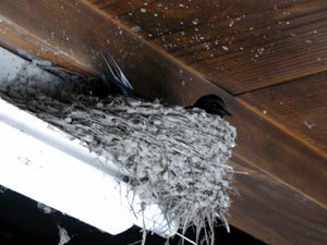 今年のツバメはせっかちで、泥が乾いていないうちから座り込んでタマゴを抱いている。皆で、尻が冷えるのではないか、と心配している。もしかして、出来ちゃった婚か?