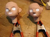白目と歯を描く。うへ〜、気色悪い。かなわんな。 黒目や唇を描くと、まあそれらしくなる。 |