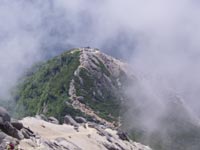 ←←直登コースはこんな具合。落ちたらホンマに死ぬで、という個所がある。途中で後悔しても、戻る方が難しい。 下りに使うのは絶対不可。 |