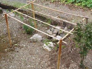 午後、茶の木を整形する。手摘みから機械摘みにシフトするために、整形し始めてから3年目だ。大分良い形になってきた。手間を少なくするための段取りに、けっこう手間がかかる。 ついでに、じゃまになっている栗の木の枝をバッサリ切る。 |