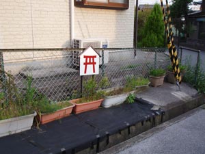 街中では知らない路地を通る。鳥居の絵が掛けてある。近くに飲み屋でも有るのだろうか。 いっぱい機嫌で立ち小便をする輩が多いのだろう。こういう昔からのまじないを知っているじいさんでも住んでいるのか。 |