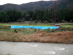 今回も「決壊」というからどんなことかと見に行ったら、川沿いの道が半分程削られただけだ。全部削られたって、その外側は田んぼで、もっと削られても山裾まで削られたらそこで終わりだ。