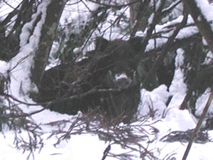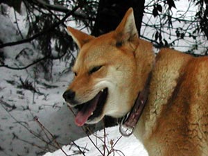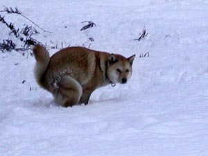 | ナツは生まれて一月もたたない内にもらわれてきたので、自分が犬だと思っていないふしがある。すぐに2足歩行しようとする。 今日などもウンコをしている写真を撮っていると「まあ、失礼ね」という顔をする(写真左)し、何を思ってか独りでニヤリと笑う(写真右)こともある。 散歩の帰りにバッタリとイノシシに出会った。(写真右下)これは近づきすぎたかなと思ったが、刺激しないようにしてともかく写真を撮る。ところがナツがトコトコと近づいていく。イノシシは「困ったな」という様子だったがやがて逃げていった。しかし、怖いモノ知らずというのも困ったモノだ。 |