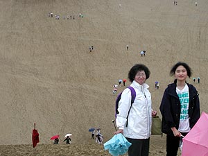 鳥取砂丘では雨が降っていたが、おかげで砂がしまって歩きやすい。塞翁が馬というやつか。昼飯に「ダチョウ定食」を食す。