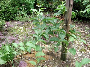 サルナシのツルもかなり伸びてきた。そろそろ棚を作ってやらねばなるまい。今年も実が3個ばかりついたが、本格的に収穫できるのは3,4年先だろう。マタタビ科なので猫がツルをかじってしまうことも有るそうだ。サルナシ酒も楽しみなことだ。