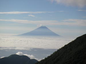 早く小屋に入りたいのだが、隠れる場所も何もない尾根を通って、もう一つ観音岳を越えなければならない。こわいよ〜。