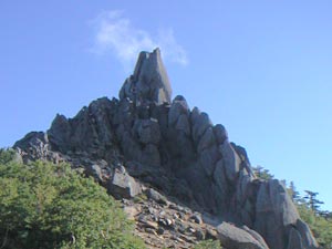 有名(らしい)な地蔵岳のオベリスク。私は足下まで登っただけだが、同僚のT君は岩のてっぺんまで登ってしまった。