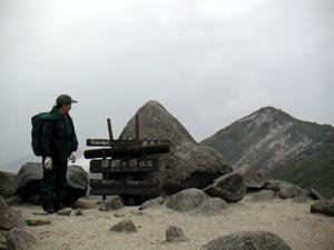 1日目の昼頃、薬師岳山頂。頭上では雷がゴロゴロピカピカしていて、写真どころではない。
