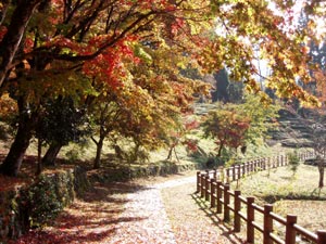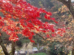 帰りは自転車を担いで、石道寺の方に降りる。石道寺も紅葉はまだだ。一部が紅葉した木が何本か有る。