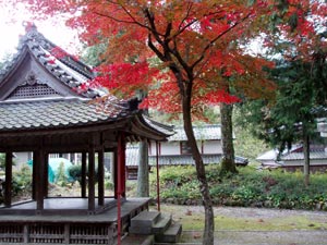 そこいらを探してみたら、高野のお宮さんにきれいに紅葉した楓が1本あった。