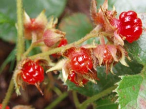 林道を自転車で登っていったら、冬イチゴが沢山あった。