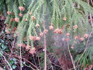 山へ散歩に行ったら、杉が満開だったので、花をつっついてみた。あたりが白くなるほど花粉が飛ぶ。さすがに頭が痛くなるような気がした。