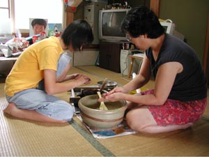 母娘でぼた餅を作る。そばで「半殺しにしようか、なますにしようか。」とチャチャを入れながら、写真を撮る。