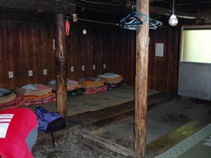 昔風の風情の残る大門沢小屋。狭いのに混んでいたので、一枚の布団に二人で寝ることになった。 |