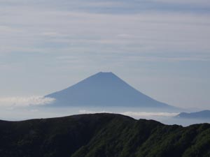 | 縦走中は富士山が見えていることが多い。少し遠いが、やはり絵になる。 | ![]() |