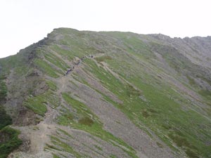 今度の縦走で一番雄大な景色だと思ったのは、北岳でも間の岳でもなく、学生さんの一隊が農鳥岳の斜面を登って行くのを見たときだ。 |