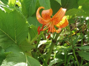 | 白峰三山といえばお花畑が有名らしいが、私には猫に小判だ。花にはあまり興味がないのだが、それではあまりにお愛想無しなので、2,3枚撮っておく。名前は分からないが、ユリの一種ではあろう。 | ![]() |