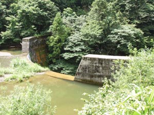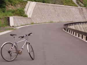 奥川並から引き返して、本流をさらに遡り、今度は尾羽梨川に入る。尾羽梨川の入口に釣り人らしい数人が居て、一体どこへ行くのだと、妙な顔をされる。 妙な顔をするはずで、道はほとんど消えている。力任せにペダルをこいで、草に埋もれた道を強引に登る。クロスバイクでこれはちょっとつらい。マウンテンバイクが欲しいところだ。 尾羽梨ダム(アーチ式の大きな砂防ダム)を越えたところで、力尽きて引き返す。 |