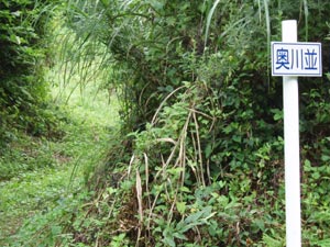 | 前回は本流をたどったのだが、今日は支流に入って、まず奥川並をめざす。舗装はされていないが、案外きれいな道だ。まだ林業で使われているのだろうか。きれいに手入れされた杉林も水没してしまう。水没する前に使える木は切り出すのかな。 奥川並にはかつては数軒の民家が有ったが、今はまったくヤブの中だ。多分工事関係だろうと思うが、リモートの観測設備らしいものが設置されていた。 |