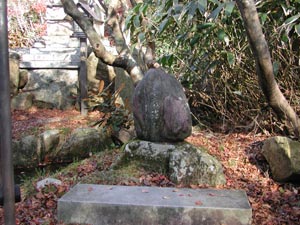 | 山上公園には御嶽神社や長者池というのが有るので行ってみる。長者池には触れると願いが叶うという「奇瑞石」が祭ってあったので、子供達の進路をお願いする。ここでケチってはいかんと思い、有り金全部(ただし小銭だけ)お賽銭箱に入れる。 | ![]() |