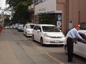 帰りに見ると、案外ロープウェイの行列が短い。ところが、車の列が続いている。どうやら車が止められないので、ロープウェイに乗れないらしい。 車の列は湯の山温泉のはるか向こうまで何キロも続いている。後ろの方は今日中にはロープウェイにはたどり着けまい。 やはり観光地に行くには余程早起きしなければならないということだ。 |
