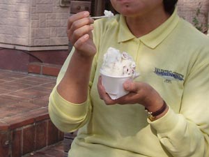 | 帰りは鈴鹿スカイラインを通って滋賀県側から帰る。途中「あいとうマーガレットステーション」とかいう道の駅でジェラートを食う。 シングル280円ダブルが340円なので、これはお得だ、とダブルを頼んだら大きすぎて食べるのに苦労した。今度行くときはマイカップを持っていって、ダブルを2人ないし3人で分けて食うと良さそうだ。 |