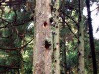 ここ一ヶ月ほど忙しくて山へ行かなかった。久しぶりにいつもの林道を終点まで歩く。見慣れた杉の木に新しい穴が開けてある。キツツキの仕業か? 週に一度、2,3時間で良いから山に登ると、身体が軽くなる。 |