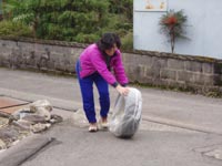 | スタッドレスとはめ替えたタイヤを妻と二人で片付ける。 妻が2本を一度に運ぼうとして、1本を先に転がしたら、勢い余って坂を転げていってしまった。結局二度手間に。 |