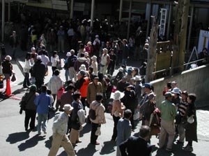 バス停では100人以上の行列があるのに、下から満員の乗客を乗せてきたバスが通過するばかり。ぶち切れた一人の男性が、バス会社に怒りの電話をかけてくれたおかげで、やっと乗れた。一同大喝采。 ところが、ロープウェイ乗り場では整理券を発行していて、2700番目。2時間半待ち。 |