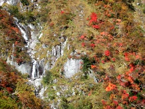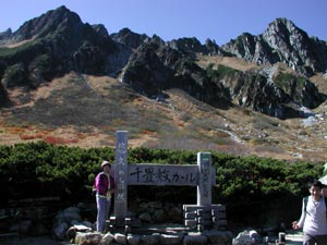 情報通り、ロープウェイから見る紅葉は、ちょうど今が見頃だ。来週はもう遅いか。 ゆっくり見たいが、7分ほどで頂上直下の千畳敷カールに着いてしまう。待っているときは早く早くと思っていたのに、勝手なものだ。 |