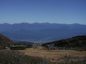 ロープウェイの窓や千畳敷からは、鋸岳から聖岳まで南アルプスのほぼ全景が見える。その向こうには頭だけだが富士山も見えている。 千畳敷ホテルのライブカメラが良い。こんな所まで車とロープウェイで登れるとは、なんとも贅沢だ。 |