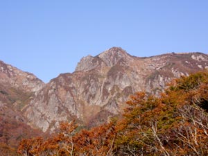遭難した人たちのコースをたどって左千方まで行ってみようかと思うが、三国岳からだと片道1時間程か。今日は三周にも行ってみたいので、やめておく。 一旦夜叉ヶ池まで戻って、今度は三周ヶ岳に向かう。良い感じに紅葉している。写真を撮りながらボチボチ行く。思ったより遠くて、1時間ほどかかってしまった。 |