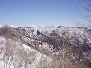 | 己高山から金糞岳に続くほぼ水平な尾根。こいつを歩いたら最高だろうなあ。道がないので、今の時期が一番だ。 今年はもう時間が取れないので、来年はもう少し早くにスノーシューとテントを持って来よう。 |