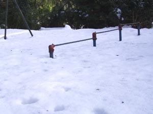 暮れの30日頃から少し気温が上がったので、境内に有る遊具も顔を出した。このまま暖かい日が続くと良いのだが。 |