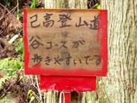 いつもは尾根筋を登るのだが、いつの間にか谷コースを勧める看板が2枚も立っているので、今日はそちらへ行ってみる。 |