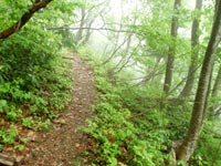 | やはり、谷道は暗いし景色も悪い。道は多少荒れているが、まあ歩きやすい。 尾根に近づくと明るく気持ちの良い道になってくる。 |