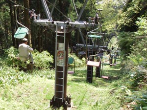木之本町大音から登る。登山用のリフトが連休中は動いているようだ。 登山道が2回ほどリフトの下をくぐる。リフトの客が、上から「頑張ってくださいね。」と声を掛けてくれる。 |