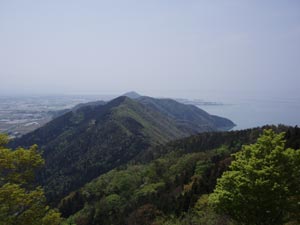 | 琵琶湖の反対側には余呉湖が見える。二つの湖が見える場所は少ないだろう。 方向が正反対なので、カメレオンでもなければ、同時には見えないが。 |