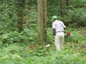勝手知ったる自分の田んぼの土手ならば注意して刈るのだが、お宮さんの境内の草刈りをしていると石を刈ったりすることもしばしば。チップソーの刃が大分欠けた。