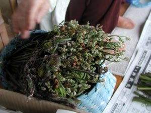 | ワラビもたくさんあったようだ。 ここ数年、京阪神や岐阜名古屋方面から山を荒らしに来る連中が多くなったが、山道から離れると十分ある。 当人は荒らしに来たとは思っていないようで、「山菜採りに来ました。」などと平気で言う。以前、「松茸を採りに来ました。」という豪傑に会ったことがある。 |