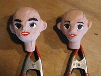ニスを塗って、毛糸の髪の毛を木工ボンドで貼り付ければ出来上がり。 紙粘土:2体分で100円。 手袋:2双(4枚)で100円。 毛糸:少量。 ニス:少量。 女の子をもう少し色白にすれば良かった。 |