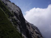 ←←直登コースはこんな具合。落ちたらホンマに死ぬで、という個所がある。途中で後悔しても、戻る方が難しい。 下りに使うのは絶対不可。 |