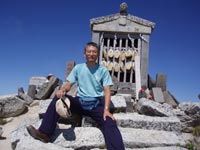 山頂のすぐ下に駒ヶ岳神社本社がある。何故か7合目と書いてある。元は7合目に有ったのだろうか。 ←←駒ヶ岳神社本社から見た山頂。 |
