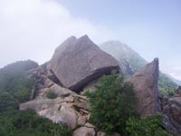 | 六方石から先は直登コースと巻き道がある。ガイドブックに「巻き道は迷いやすいので、初心者は直登コースへ行け」と書いてあった。真っ赤なウソ。 | ![]() |